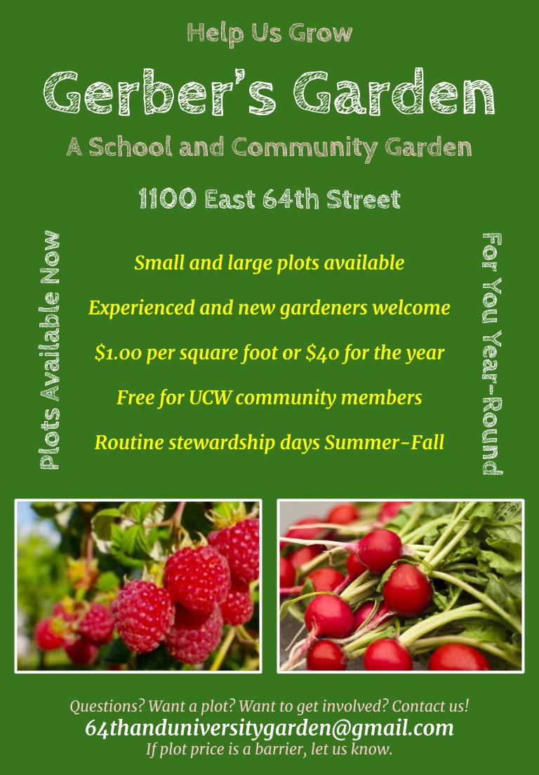 Want to get updates about the garden and to communicate about it by text? Join the Gerber’s Garden Remind text list by texting @ucwgarden to 81010.